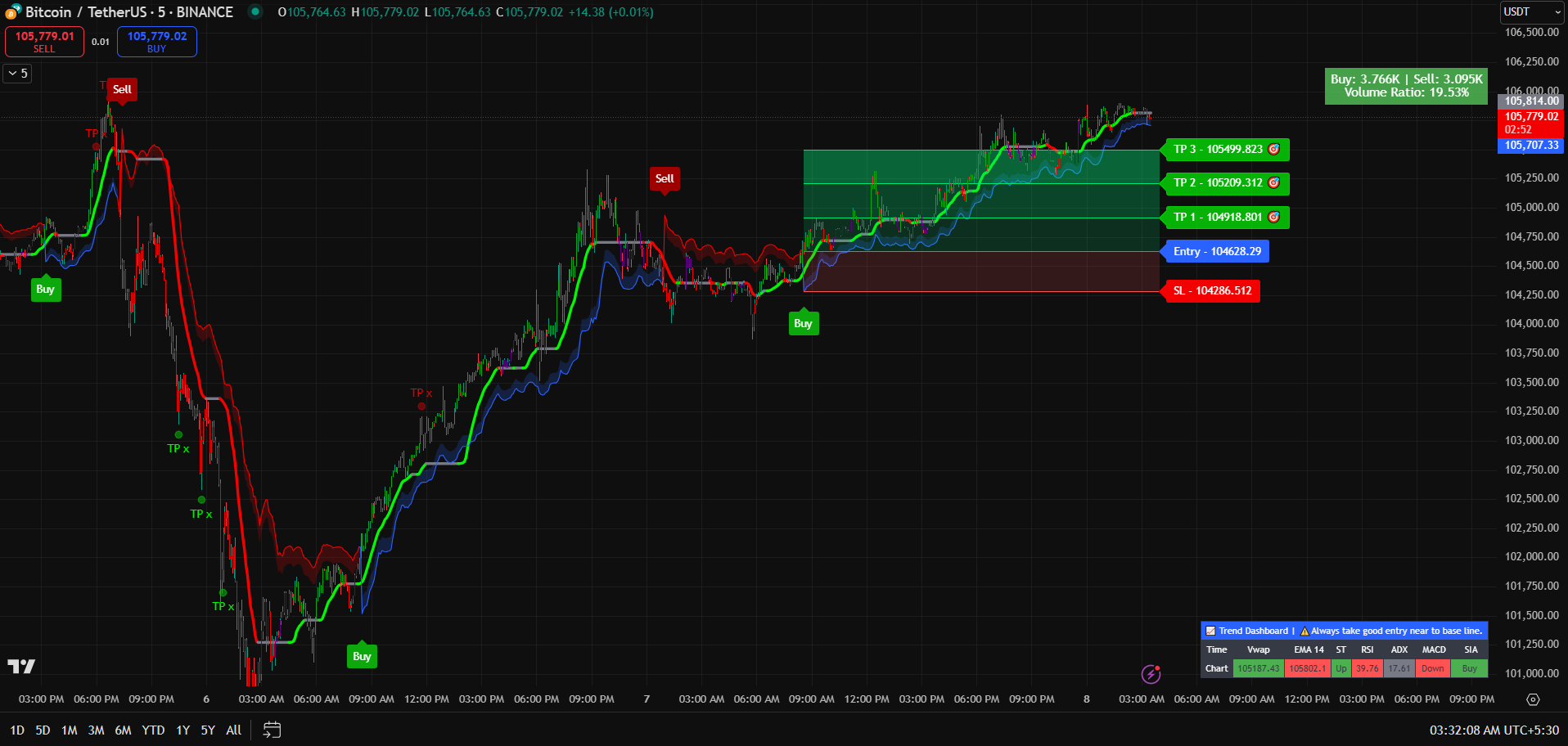Sniper AI Algo works for all markets available on TradingView such as Indices, stocks, crypto, forex, and commodities etc.